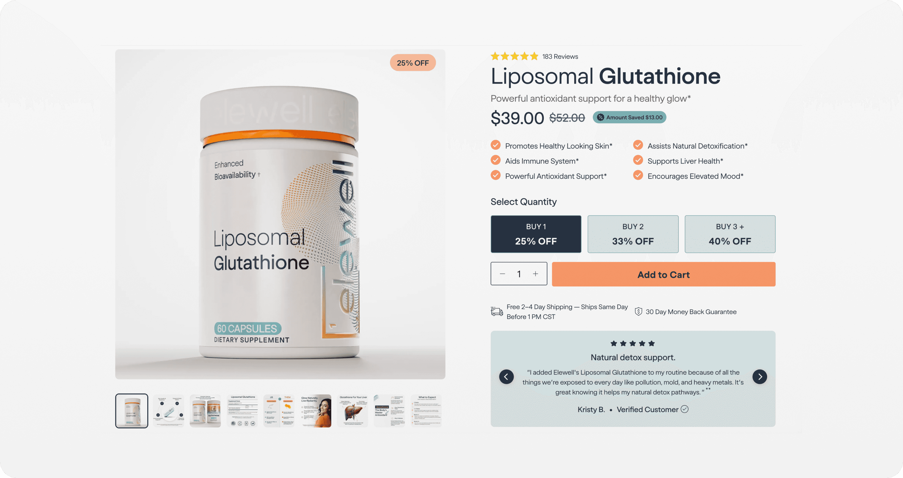 Because Elewell does not use a subscription model, the primary goal was to maximize Average Order Value (AOV) through volume-based incentives. We replaced the standard quantity dropdown with an interactive Savings Matrix on the Product Detail Page (PDP).