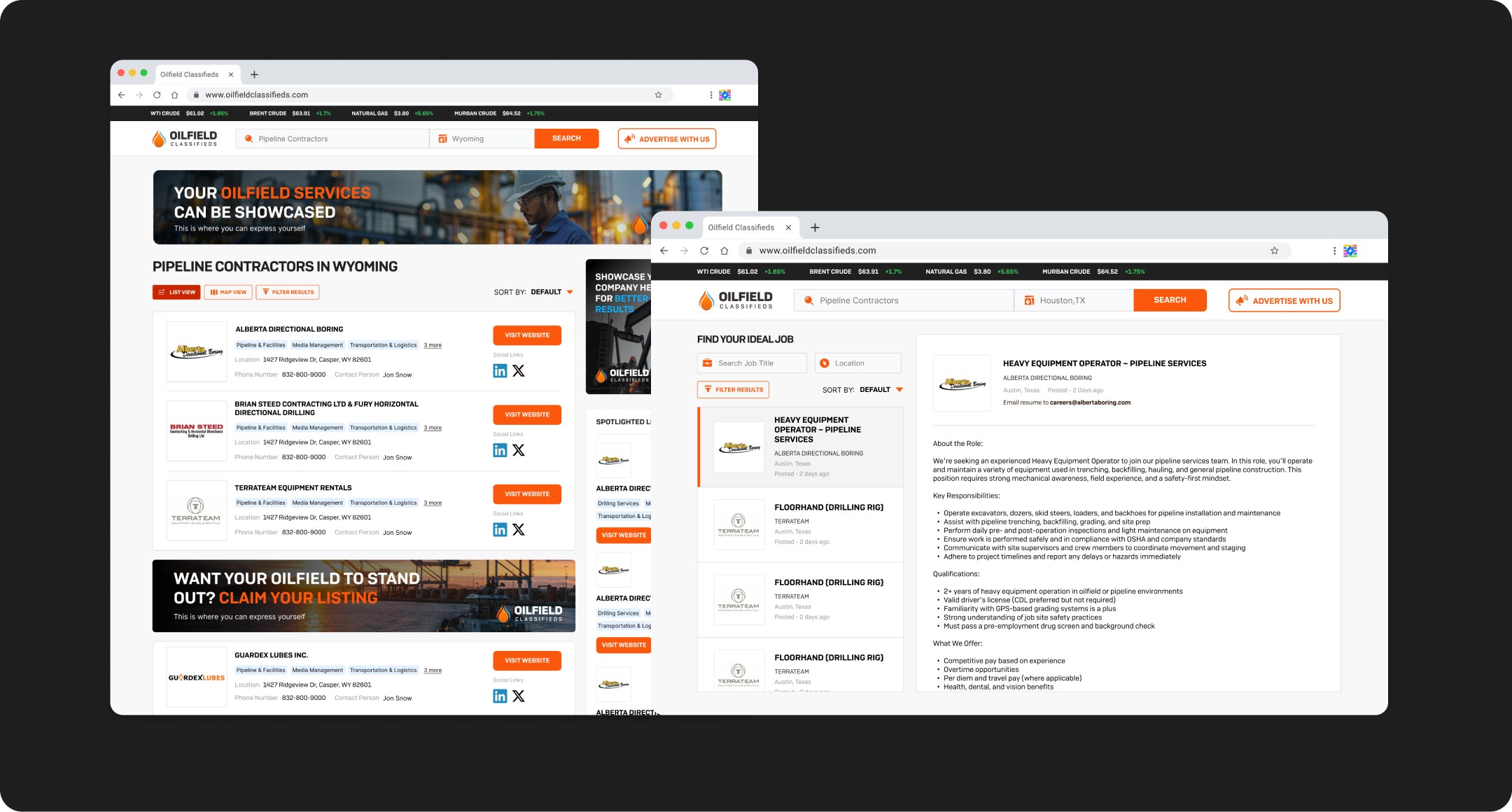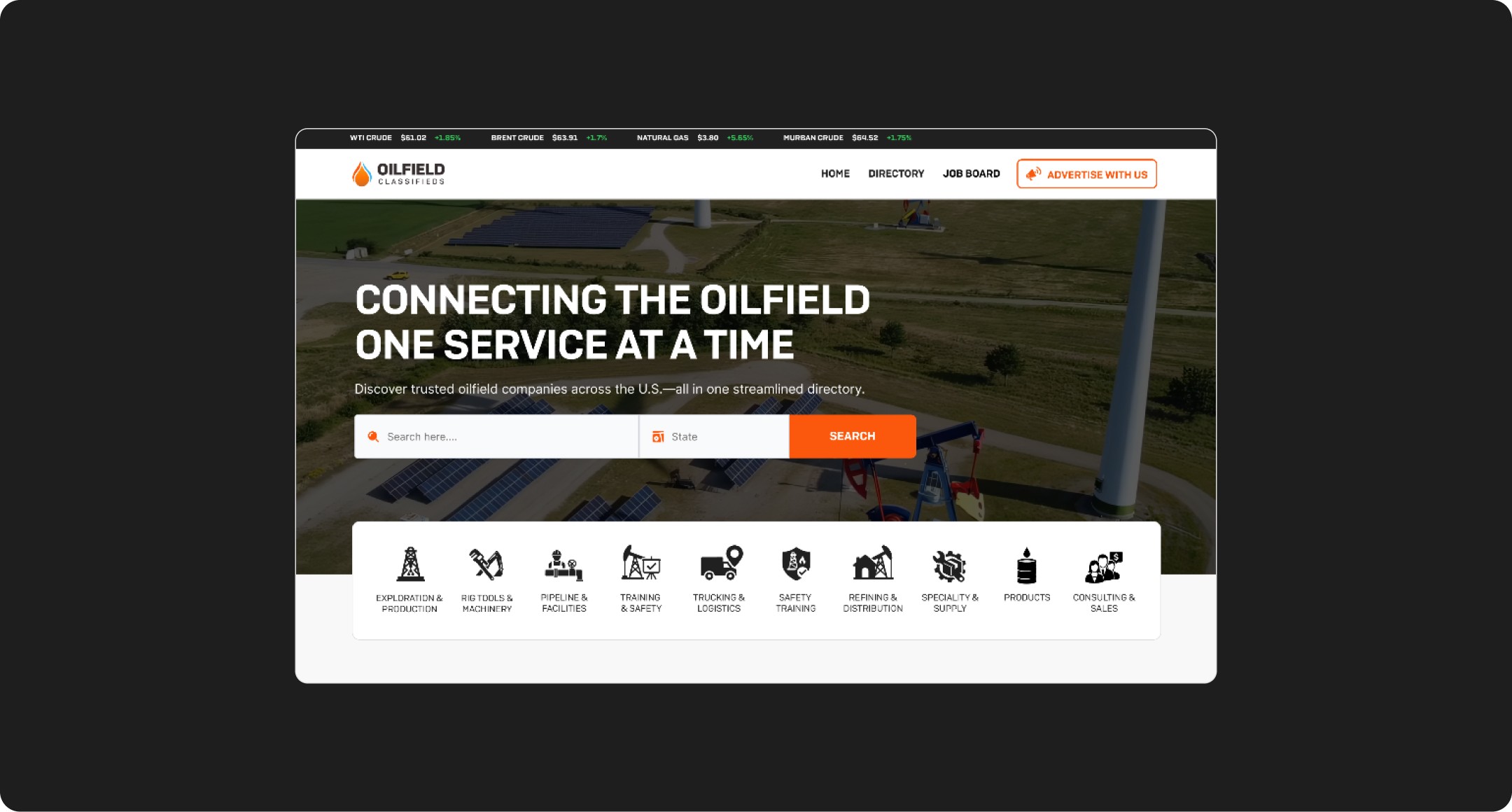 Live Market Context: To make the site a daily "source of truth," I integrated a live commodities ticker. This ensures that every time a user checks the price of WTI or Natural Gas, they are reminded of the vendor directory.